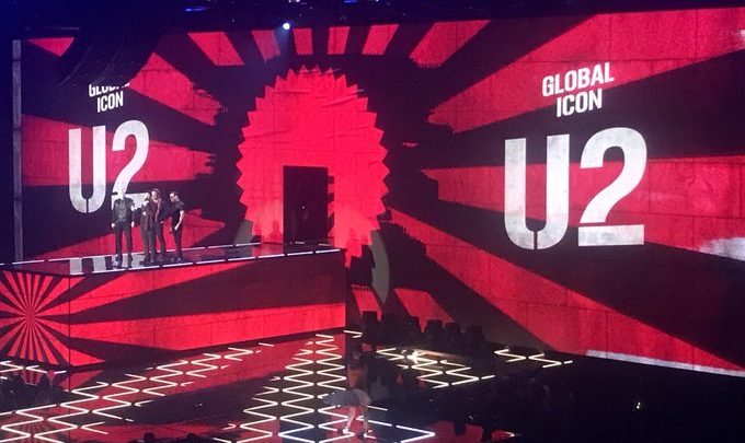 U2 tonight picked up the ‘Global Icon’ Award at The MTV EMA show.